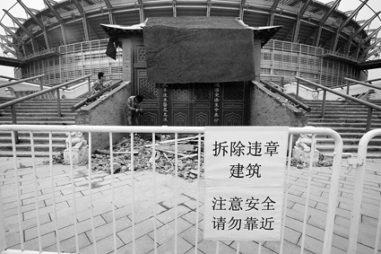 “整體建筑風(fēng)格跟奧體不符,所以將其拆除!边@名拒絕透露身份的男子對(duì)記者說道。