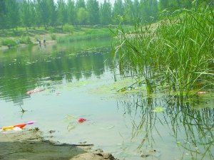 水面上漂浮著雜物。