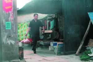 6月7日,一名男子手拎兩包雛雞從“黑作坊”內(nèi)走出來(lái)。