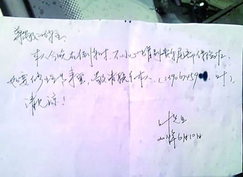 吃過晚飯,在小區(qū)里理發(fā)時(shí)剛好看到一男一女在一輛汽車雨刮器上放了張紙條,然后就走了。理完發(fā)后我上前查看,上面寫著:“尊敬的車主,本人今晚在倒車時(shí)不小心撞到貴車尾部保險(xiǎn)杠,如要修理等事宜,敬請聯(lián)系本人……請見諒!”落款為葉先生。