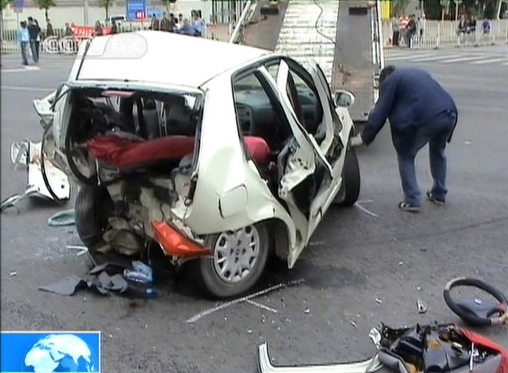 5時35分,“英菲尼迪”由北向南行至朝陽區(qū)建國門外大街永安里路口時,將正等待紅綠燈的菲亞特轎車撞出路口,致其又與一輛轉(zhuǎn)彎的公交車相撞,造成“菲亞特”車內(nèi)一家3口兩死一傷。