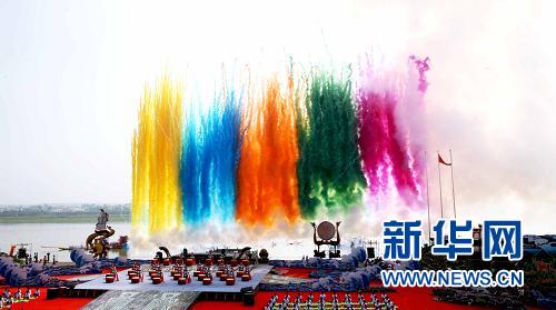第六屆中國汨羅江國際龍舟節(jié)開幕6月15日拍攝的龍舟節(jié)開幕式現(xiàn)場。當(dāng)日,第六屆中國汨羅江國際龍舟節(jié)在湖南汨羅市汨羅江畔開幕。新華社發(fā)(李明攝)