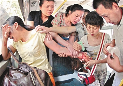 昨日上午9:40,四川女孩阿婷(化名)在563路公交車上的沖動之舉,嚇壞了車上乘客———為愁怨所傷的她悄悄用水果刀切開自己的左腕,滿手鮮血引起短暫騷動。緩過神的人們迅速展開一場自發(fā)的救助行動。