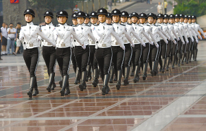 昨日上午8點(diǎn)40分,46名女交巡警邁著整齊劃一的步伐出現(xiàn)在人民廣場(chǎng),頓時(shí)吸引了眾多市民。在進(jìn)行簡(jiǎn)單的列隊(duì)后,交巡警女子特勤支隊(duì)支隊(duì)長(zhǎng)肖蕾一聲令下,45名女交巡警隊(duì)員便分為幾組,每組由一名女交巡警進(jìn)行講評(píng)。