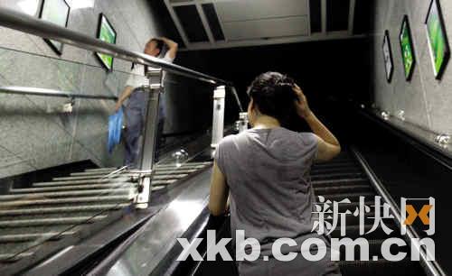 昨晚,小英只身從地鐵華師站E出口出站。新快報記者 寧彪/攝