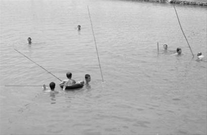大約2時許,搜救人員桑小磊在水下搜救時,突然腳下好像踩到了一個軟綿綿、圓呼呼的東西,桑小磊心里一驚,馬上探出頭來大喊:“我找到了,在這兒呢?我碰到孩子的腦袋了”。話音剛落,附近的幾個搜救者立刻圍攏過來下到水里,果然在水底找到了落水者。隨后施救人員萬慶春扎到水里,用繩索套住了孩子的腳脖,大家七手八腳終于將落水者抬出了水面,可此時落水者已經(jīng)沒有了呼吸。孩子的父母看到兒子的尸體,立即上前抱在懷里嚎啕大哭,有好幾次都哭昏了過去。