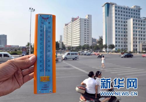 溫“烤”驗(yàn)下的生活。7月6日16點(diǎn)53分,山西省運(yùn)城市街頭一位市民手中的溫度計(jì)顯示當(dāng)時(shí)氣溫突破40攝氏度。 新華社發(fā)(黃文鵬 攝)