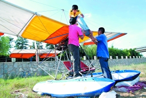 被當(dāng)?shù)厝罕姺Q為“河源怪人”,一生鐘情自造“飛機(jī)”、現(xiàn)年35歲的河源市連平縣田源鎮(zhèn)金樹(shù)村農(nóng)民熊天華,為渴望擁有自己親手制造出來(lái)的飛機(jī)和實(shí)現(xiàn)自己的飛天夢(mèng),16年來(lái)一直沉迷閉門(mén)自造飛機(jī)和進(jìn)行冒險(xiǎn)試飛活動(dòng)。昨日,他造出第六架不同于以往的陸上“飛機(jī)”——水上“飛機(jī)”,這也是他人生首次自造的“水上飛機(jī)”。