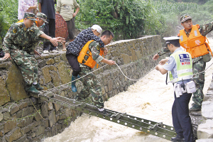 7月7日以來,重慶市東南地區(qū)連日大雨。9日凌晨,一場暴雨突襲渝東南重鎮(zhèn)黔江,武警重慶市總隊(duì)第五支隊(duì)官兵多路出擊。但一座隨時(shí)都有可能垮塌的水泥橋攔住了村民的去路,武警重慶市總隊(duì)第五支隊(duì)二中隊(duì)代理排長王超在一根繩的幫助下,來回83趟將被困的83名村民全部轉(zhuǎn)移。