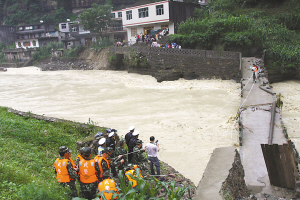 直接過河營救?不行,斷橋隨時(shí)可能垮塌,橋毀人亡。用沖鋒舟?一下水就要被激流沖走。怎么辦?