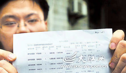 劉先生向記者出示消費(fèi)賬單 記者溫?zé)橏螖z