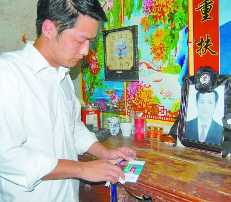父親忠誠自己的職業(yè),兒子在父親的遺像前揩擦父親的上崗證。