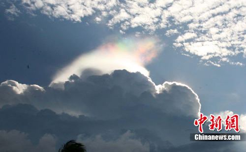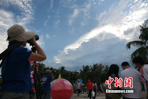 7月18日下午17時,?诩偃蘸┪鱾(cè)上空出現(xiàn)七彩云,奇觀持續(xù)時間約一個小時,引起市民駐足觀看。