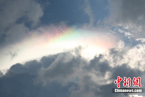 ?谏峡粘霈F(xiàn)的七彩云。付美斌/攝