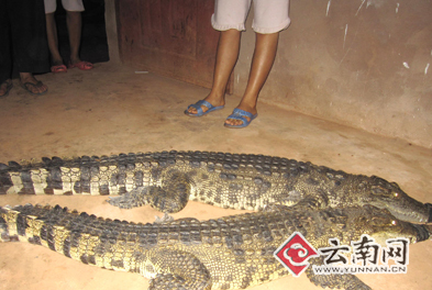 據(jù)西雙版納自然保護區(qū)勐臘派出所的所長代旭介紹,他們趕到現(xiàn)場后,發(fā)現(xiàn)這兩條兩米多長的大鱷魚正趴在李明周的家中,沒有人敢靠近。檢查后也沒有什么外傷,便將其帶回派出所暫時看管。但是,兩條鱷魚是不是中國原產鱷魚,為什么會出現(xiàn)在小磨公路的隧道中?警方表示還在調查。(記者 戴振華 通訊員 常宗波 楊建)