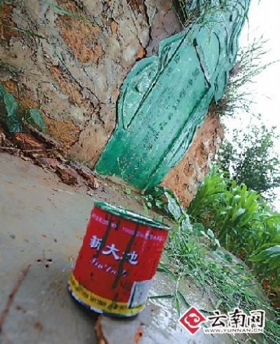 油漆桶還丟在墳邊 記者 周明佳 攝 圖片來源:云南網(wǎng)