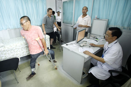 昨日下午,在福建醫(yī)科大學(xué)附屬第一醫(yī)院,18位腿腳不便的殘疾人通過了駕校體檢。在這18人中,將誕生我省第一位雙下肢殘疾的司機(jī)。