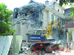 城管部門負(fù)責(zé)人表示,按照目前進(jìn)度,宏達(dá)徑26號(hào)違建最快將在3天內(nèi)能夷為平地,“強(qiáng)拆力度只會(huì)加強(qiáng)不會(huì)減弱,城管隊(duì)員和清拆工人雙休日也不放假,并且24小時(shí)值班,一直將違建別墅拆除完畢為止。”
