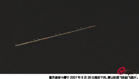 讀者小繆于2007年8月28日晚拍下的蕭山機(jī)場飛機(jī)起飛照片。