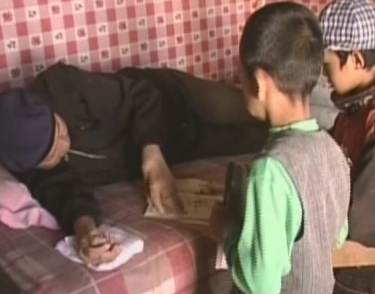 實(shí)在無(wú)法到校時(shí)王老師就躺在炕上給學(xué)生上課。
