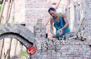 羅大爺頂著烈日砌磚