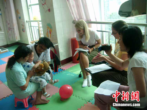 日前,兩名美國(guó)慈善組織工作人員來(lái)到河南汝州市金庚醫(yī)院,看望了腦癱康復(fù)兒童,并為39名腦癱康復(fù)孤兒辦理了出國(guó)收養(yǎng)手續(xù)。 (記者 李金輝 通訊員 桂焱煒 李偉恒)