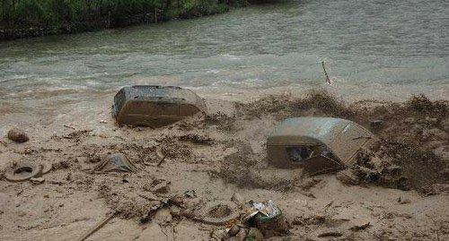 甘肅舟曲縣今晨突發(fā)特大泥石流災(zāi)害,車輛沖入水中