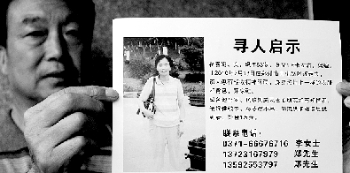 昨日下午,被曬得黝黑的鄭德仁拎著一個手提袋趕到報社,袋里裝著妻子的照片和厚厚一沓尋人啟事。