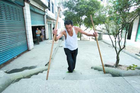 李亞明只能靠?jī)筛髯又涡凶?記者 張路橋 攝