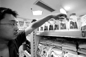 昨天,崇文門新世界商場地下超市里,已經(jīng)擺上了一排白底藍蓋的瓶裝“無碘精制鹽”,售價為2.4元,不過市民似乎對其沒有太多注意,買的人并不多。