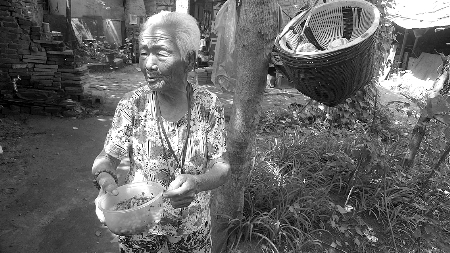 在鄭州市石化路附近一個破落的窩棚里,住著一位101歲高齡的孤寡老太。老人親人盡失,孤苦伶仃。這樣一位歷經(jīng)歲月磨難的老人,從來不吃早餐,中午靠飯店施舍的饃菜度日。老人雖然年過百歲,但愛管閑事,喜歡抽煙。雖然生活艱辛,但老人很有愛心,還把自己的低保費捐給舟曲災區(qū)。雖然無依無靠,但老人卻被愛心包圍,經(jīng)常得到愛心人士的幫助,生活簡單、快樂……