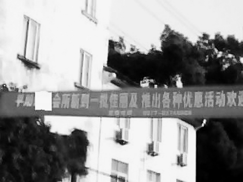 “旮旯人”發(fā)帖很簡(jiǎn)單:一張比較模糊的照片顯示,橫幅掛在一幢黃色房子前面,也就大致能看出,上面寫(xiě)著“平陽(yáng)XX(照片處理過(guò),遮去了名字)會(huì)所新到一批佳麗及推出各種優(yōu)惠活動(dòng)歡迎……”等字樣。