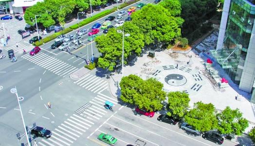 在溫州車站大道和溫迪路交叉口,記者找到了這個(gè)被網(wǎng)友熱議的超大八卦圖。八卦圖位于一幢在建的商務(wù)大廈的門前廣場上,記者目測,約有近百平方米。