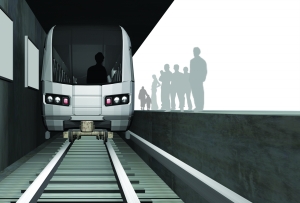接觸軌,又稱第三軌,是車輪所在兩條鐵軌旁邊的另外一條軌道,給列車供電。