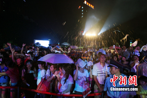 在開幕晚會上,原花兒樂隊主唱大張偉的精彩演出更點燃了重慶市民的熱情,F(xiàn)場隨處可見被啤酒淋得全身濕透的市民,毫不在意地揮舞著手中的熒光棒與臺上的歌手互動。