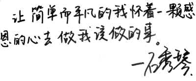 “我簡(jiǎn)單而平凡,只是懷著一顆感恩的心去做我該做的事!边@是石秀琴的座右銘,也是她一直樂(lè)觀面對(duì)生活的精神支柱。
