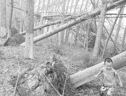 狂風(fēng)過處,不少大樹被連根拔起。