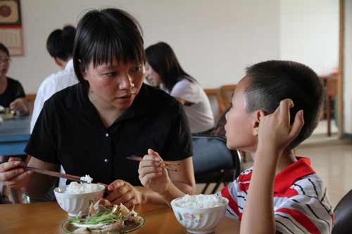 下午6點(diǎn),開飯時(shí)間到了。小麥跟著媽媽一起拿碗、盛飯、端菜,坐在媽媽旁邊,興致勃勃給媽媽講班上的故事。林老師望著兒子,眼中充滿欣慰:“兒子很懂事,有了他,我相信支教生活不會(huì)孤單!