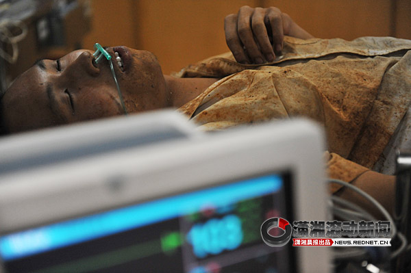 9月15日晚,小陸躺在第四醫(yī)院的病床上。 圖/瀟湘晨報(bào)滾動(dòng)新聞?dòng)浾?邵驍歆