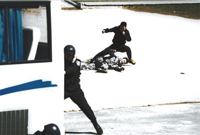 一名企圖逃跑的大巴“匪徒”被制伏。