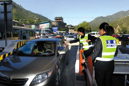 資料圖片:4日,京藏高速居庸關(guān)長(zhǎng)城收費(fèi)站,車多擁堵。 記者 尹亞飛 攝