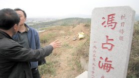 馮占海將軍墓碑被人弄倒在地(資料圖片)