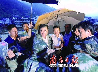 資料圖片:圖為中秋節(jié)汪洋、黃華華在受災(zāi)最嚴(yán)重的茂名高州市馬貴鎮(zhèn)搶險一線部署救援工作。南方日報記者高笑攝