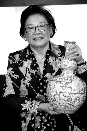 收藏家張永珍以2億5266萬(wàn)港元拍得乾隆長(zhǎng)頸葫蘆瓶。