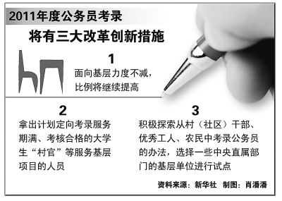 記者10月10日從國家公務員局獲悉:由中組部、人力資源和社會保障部、國家公務員局統(tǒng)一組織實施的2010年度中央機關(guān)及其直屬機構(gòu)考試錄用公務員工作自2009年9月開始,經(jīng)過制定錄用計劃、發(fā)布招考公告、報名與資格審查、筆試、面試、體檢和考察、公示、審核備案等8個程序,現(xiàn)已全部結(jié)束。從總體看,2010年度的考試錄用工作進展順利,工作更加規(guī)范、透明,受理的有關(guān)信訪、申訴的信件和電話與往年相比有所減少,用人部門、考生和社會總體反映比較滿意。