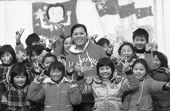 今年1月28日,被評為“2009年度感動(dòng)中國十大人物”的河南周口淮陽許灣鄉(xiāng)希望小學(xué)校長李靈,在學(xué)校和孩子們高興地跳了起來。2009年6月,李靈為實(shí)現(xiàn)給孩子們搭建簡易“閱覽室”的夢想,在鄭州街頭四處奔波,推著三輪車高價(jià)收購小學(xué)生教輔課外讀物等。陳曉東攝(資料圖片)