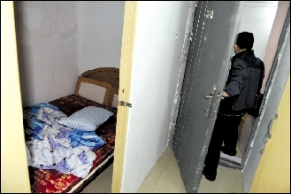 昨日,北京治安管理總隊(duì)和豐臺(tái)分局聯(lián)合掃黃行動(dòng)中,搗毀了豐臺(tái)火車站貨場(chǎng)底商的多處賣淫窩點(diǎn)。民警在介紹一處休閑中心內(nèi)的暗門。在一處柜子門的掩護(hù)下,內(nèi)部是另一間房間,并裝有防護(hù)門,房間一角有逃跑窗戶。新京報(bào)記者 趙亢 攝