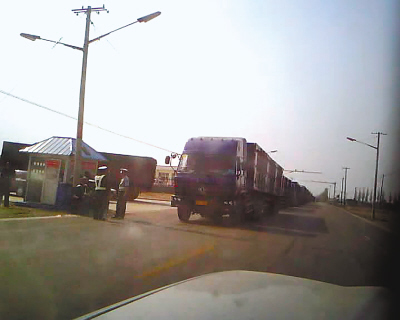 一名能操河北方言的暗訪人員喬裝改扮,征得司機同意后,搭乘上了一輛河北牌照的運煤過境車。車行不遠,即在應縣路段遇到了5公里長的堵車。原來是該縣的執(zhí)勤民警對上山車輛實行分時段堵疏時逢車必攔(超過了一次攔車不能多于3輛的規(guī)定),造成了車輛滯留。暗訪人員進行了全程拍攝取證。