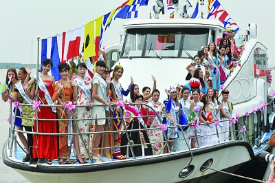 即將參加南京“名城會”全球生態(tài)小姐世界大會頒獎的62個國家和地區(qū)的佳麗們,登上游輪成為創(chuàng)新旅游路線的第一批游客。 劉 瀏 攝