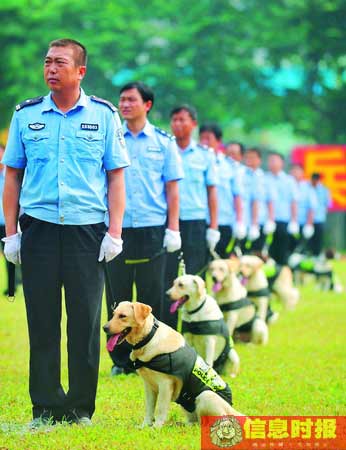 “這些萬中挑一的警犬全都身手不凡,其中35條是功勛犬,它們將在廣州亞運(yùn)期間負(fù)責(zé)核心場館的搜爆、搜毒等安保工作!睋(jù)介紹,廣州亞運(yùn)安保警犬技術(shù)團(tuán)隊除廣州市100名帶犬警察及攜帶的100條工作犬外,還有來自23個省(區(qū)、市)的公安機(jī)關(guān)以及民航、邊防系統(tǒng)的210名帶犬警察及其攜帶的210條工作犬。他們當(dāng)中,有曾經(jīng)參加過2008年北京奧運(yùn)會、2009年北京國慶防爆安檢工作中的帶犬警察和工作犬。